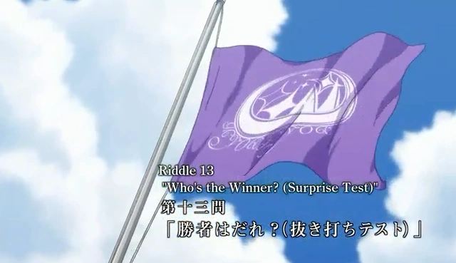 Who's the Winner? (Suprise Test) (勝者はだれ?(抜き打ちテスト); Shōsha wa dare? (Nukiuchi tesuto)) is the 13th episode of Akuma no Riddle which was unaired on TV thus only serves as an additional OVA episode which released together with the seventh Blu-ray/DVD volume on December 17th, 2014.